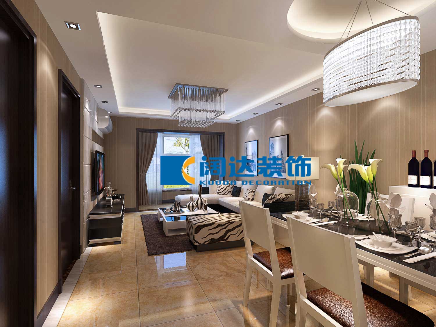 本案戶(hù)型設(shè)計(jì)格局很合理,沒(méi)有大的變動(dòng),通過(guò)造型吊頂和壁紙的相呼應(yīng),整體風(fēng)格統(tǒng)一化,電視背景墻以白色石材為主線貫穿整體,使空間時(shí)尚大方。