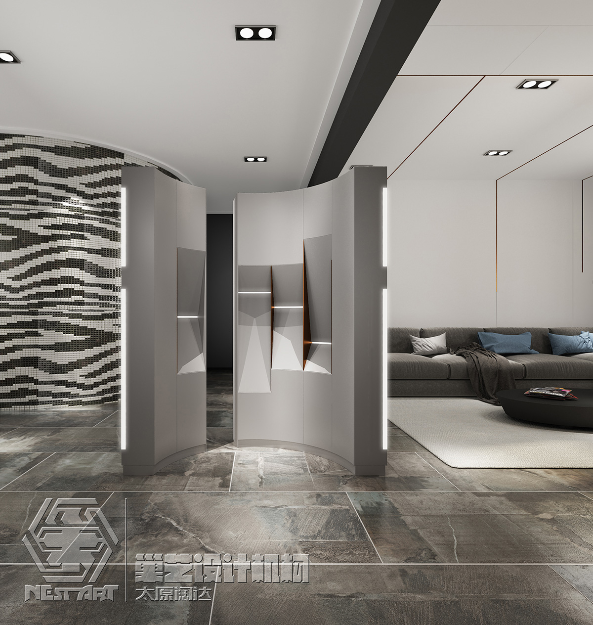 居家場域以沉靜色調(diào)為基底,融匯復合媒材,營造自然質(zhì)樸氛圍;另外亦希望透過重整空間格局,讓室內(nèi)達到通透敞亮的效果。再將視線移至天花板的特殊結(jié)構(gòu)設計,除劃分不同場域及活動范疇,同時創(chuàng)造了視覺的延展性及豐富性??蛷d與餐廳在此流動空間的設計下,無形間促進家人情感的共享與交流;并于百葉窗開掩時的光暈映照下,灑落一抹靜謐柔美,形塑家的溫馨暖韻。同風格案例:更多>>
