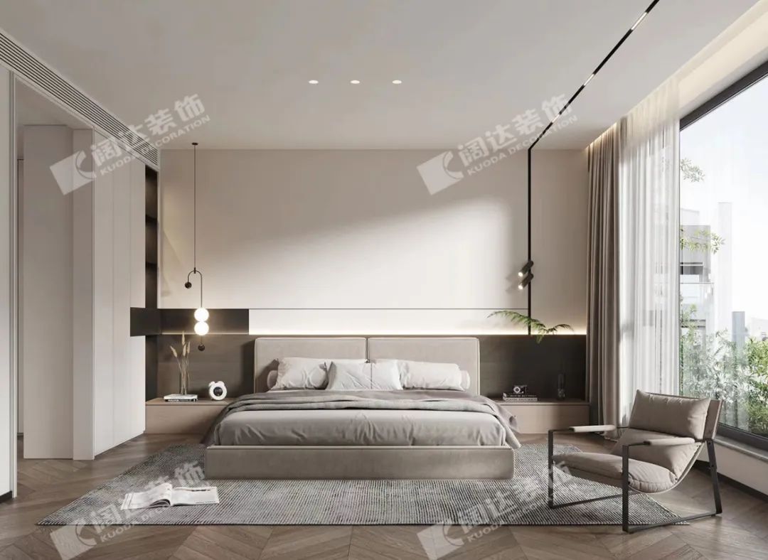主臥:視覺上的開闊,被光暈染的每個角落,讓人隨心沉浸到自我的空間當中,亮色的家具在白色空間內(nèi)恰好起到了點綴的妙用。