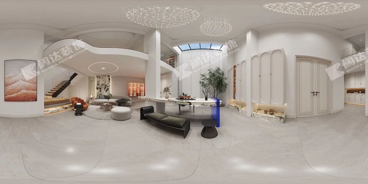 本案在視覺空間上顯得簡潔明亮,奶白色與撞色搭配,豐富了空間,給家居生活帶來無限的可能性。