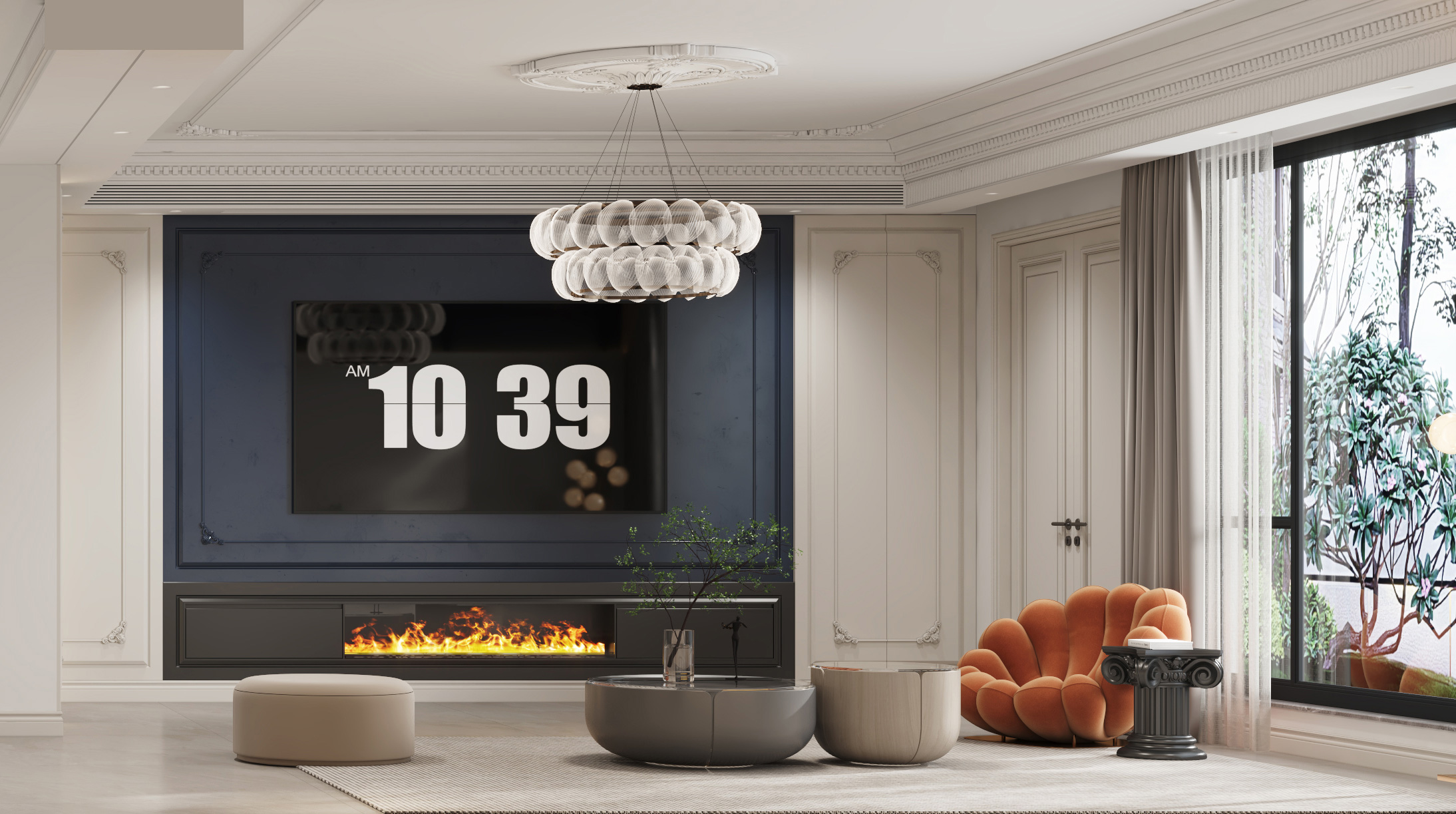 精致水晶燈搭配調(diào)和出高級的復(fù)古韻味以及空間的浪漫主義氣息,營造自由舒適的家居氛圍。