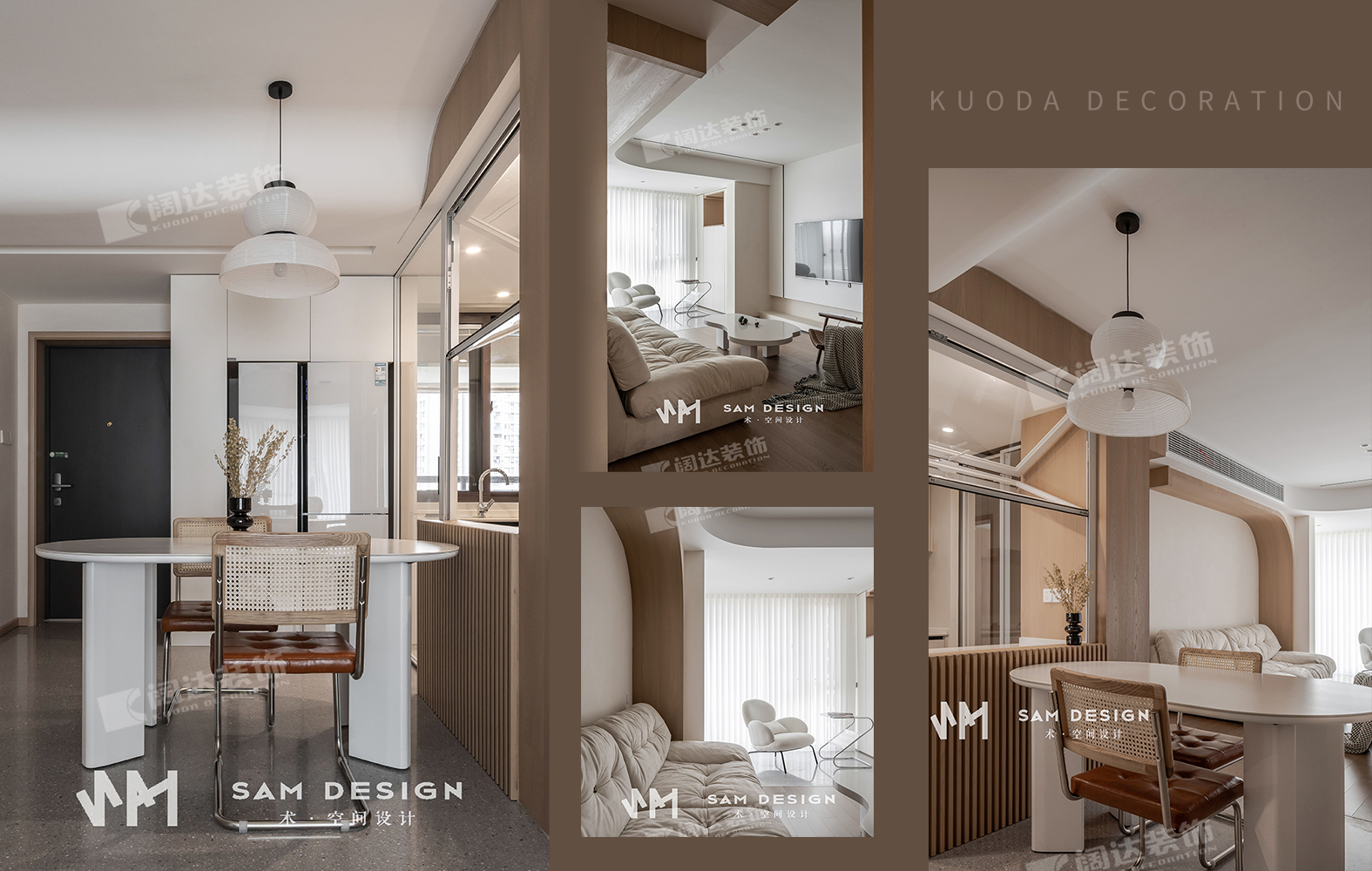 整個戶型中規(guī)中矩,設計師在功能分區(qū)時,大膽地打破傳統(tǒng)廚房餐廳概念,釋放空間。