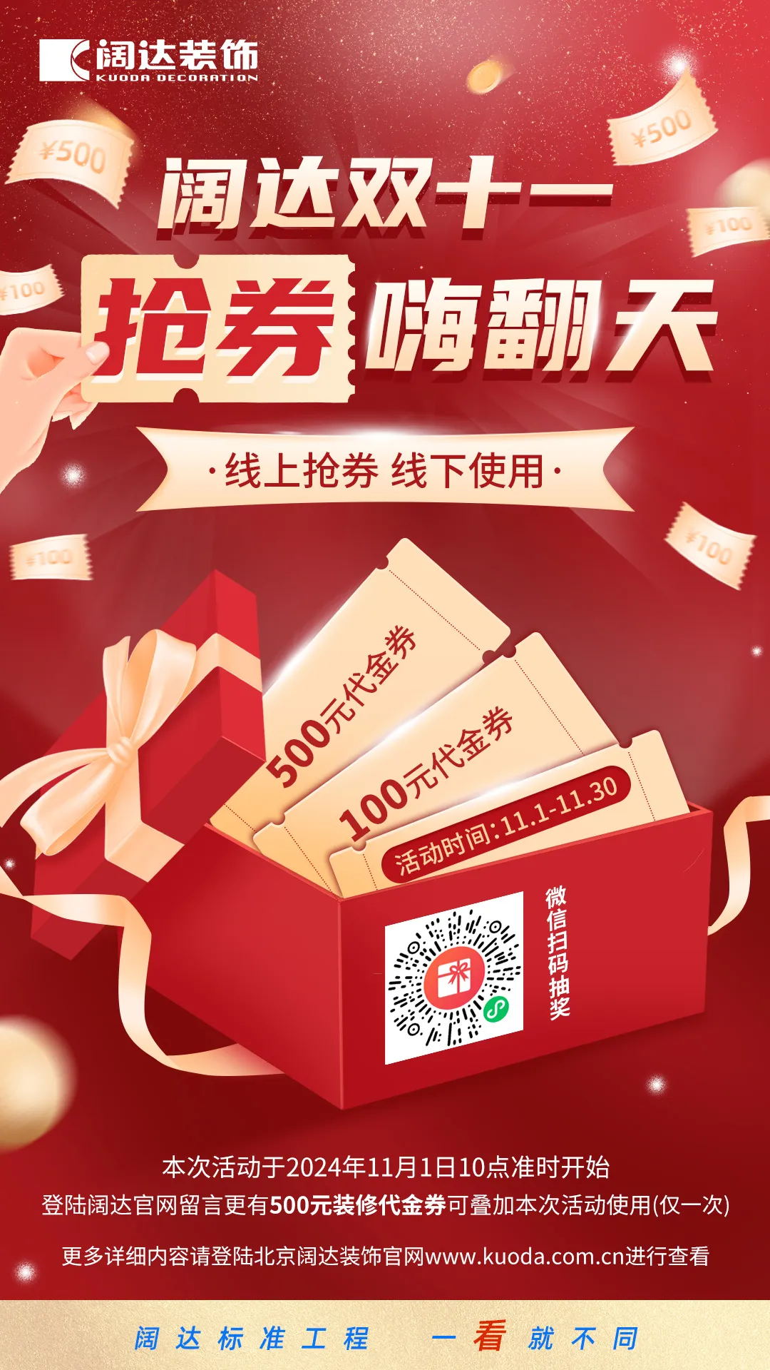 3、11月8日10點(diǎn)至11月30日可前往闊達(dá)官方授權(quán)門店進(jìn)行預(yù)約裝修,享受優(yōu)惠券抵扣。