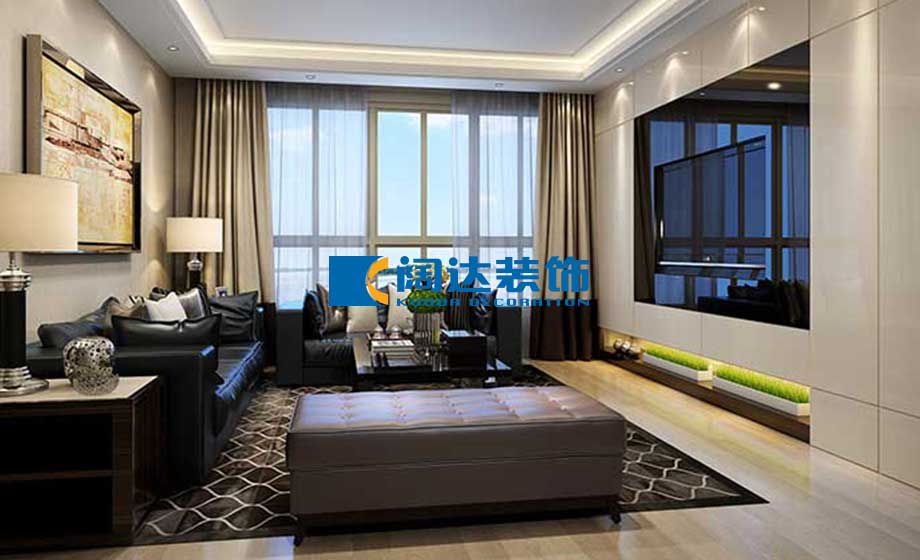 客廳:主要原有電視背景墻凹進(jìn)一塊,電視墻狹小問(wèn)題,通過(guò)裝飾手段把背景拉伸