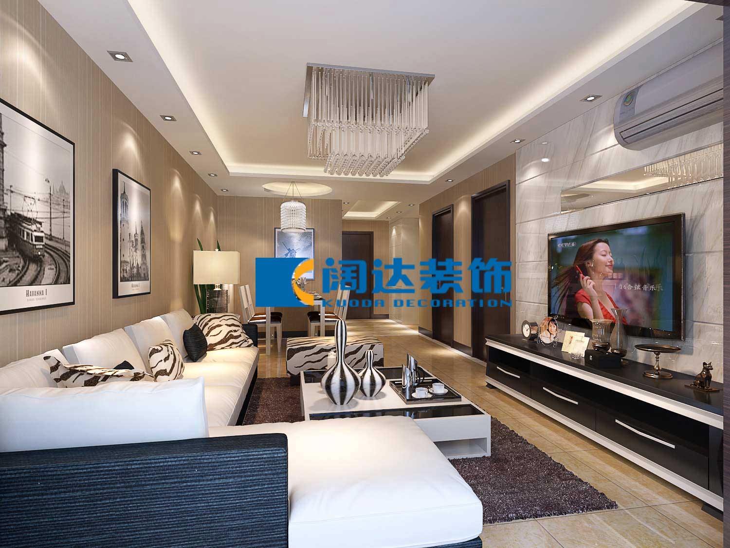 本案戶(hù)型設(shè)計(jì)格局很合理,沒(méi)有大的變動(dòng),通過(guò)造型吊頂和壁紙的相呼應(yīng),整體風(fēng)格統(tǒng)一化,電視背景墻以白色石材為主線貫穿整體,使空間時(shí)尚大方。