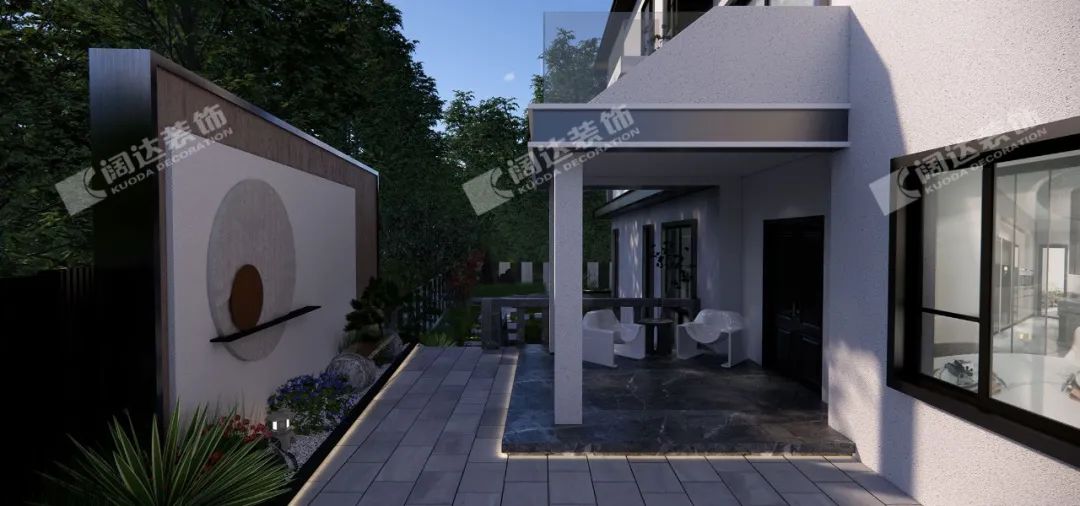 豁然開朗的休閑區(qū),溫暖的陽光灑在地面,留下斑駁的倒影。