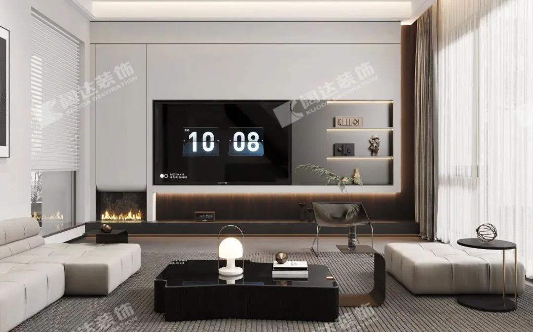 客廳電視背景墻:運用簡約、當代的手法去布局,借以保持空間的質(zhì)感,外表平靜,卻承載了生活里的豐富。像是藝術(shù)家康定斯基在畫布上自由地發(fā)揮想象空間。