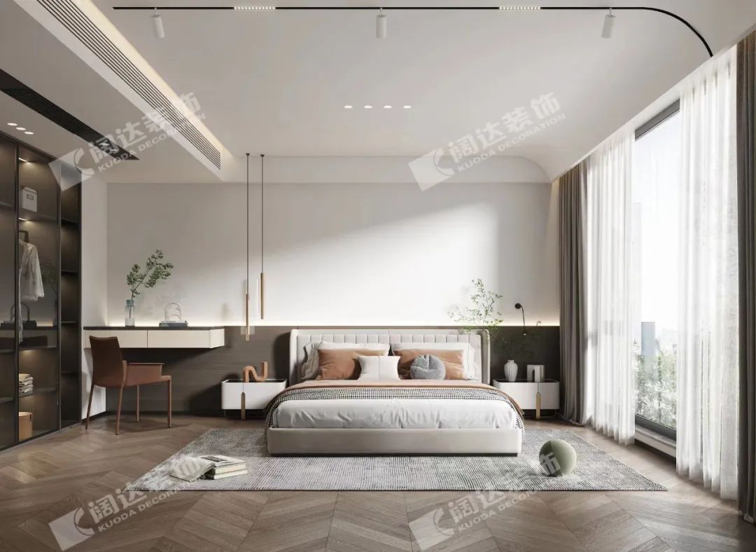 男孩房:素色主色調(diào)衍生出純粹且過目難忘的意境,點綴的木色,使空間如謙謙君子一般,溫潤如玉。