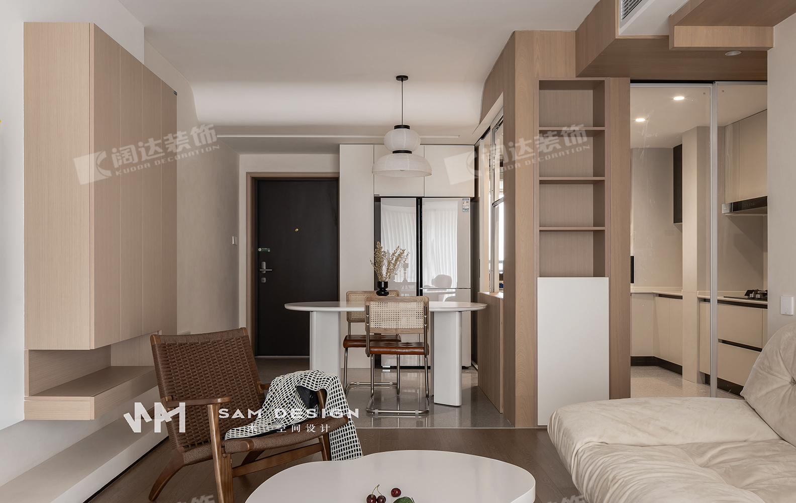 整個戶型中規(guī)中矩,設計師在功能分區(qū)時,大膽地打破傳統(tǒng)廚房餐廳概念,釋放空間。